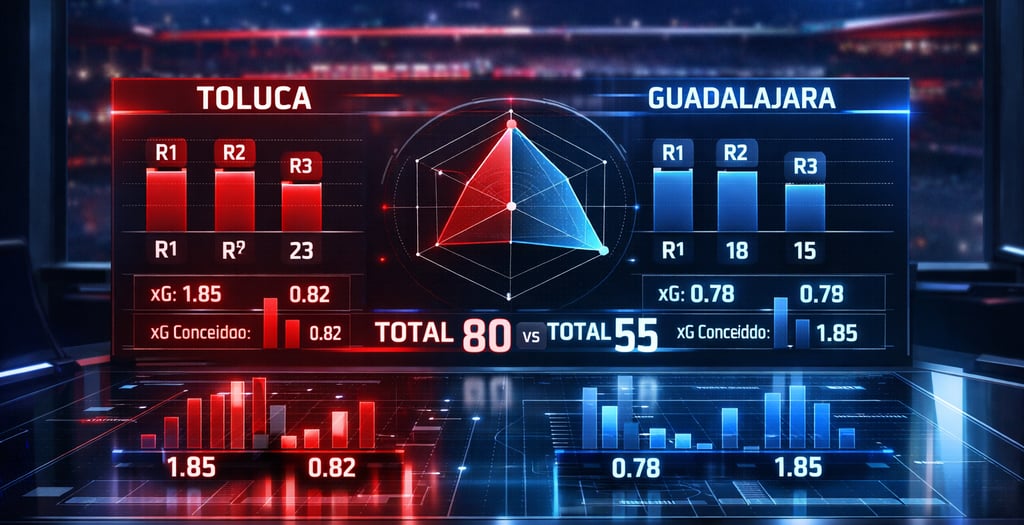 El análisis estructural Toluca vs Guadalajara Jornada 8 Liga MX confirma superioridad sistémica del local. El diferencial de 25 puntos en el Índice R³ es sólido en torneo corto y proyectable en torneo largo, aunque no alcanza rango de dominio absoluto.