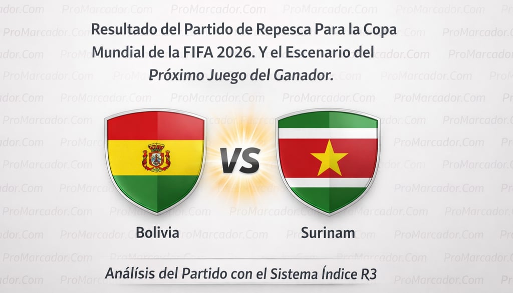Este análisis responde a la intención de búsqueda de una evaluación estructural comparativa del partido Bolivia vs Surinam mediante el Sistema Índice R³. El enfoque se centra en medir el rendimiento competitivo real sin describir jugadas, evaluando tres dimensiones: Resistencia estructural (R¹), Capacidad de respuesta (R²) y Riesgo estructural (R³). El objetivo es determinar si el marcador refleja la estructura del partido, cuantificar la diferencia competitiva y analizar la sostenibilidad del resultado dentro del contexto intercontinental.