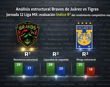 Análisis estructural Bravos de Juárez vs Tigres Jornada 12 Liga MX: evaluación Índice R³ del rendimiento competitivo real