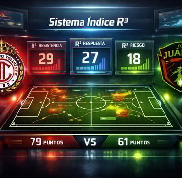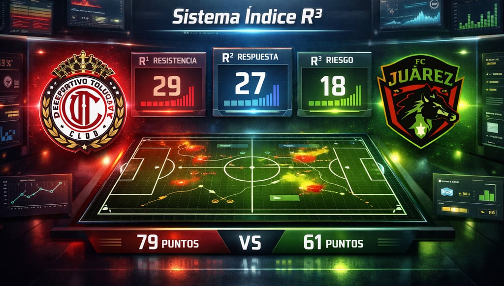 El análisis mediante el Sistema Índice R³ indica que Toluca obtuvo una ventaja estructural clara sobre Bravos de Juárez, principalmente por su mayor estabilidad competitiva y su mejor capacidad de adaptación durante el partido.