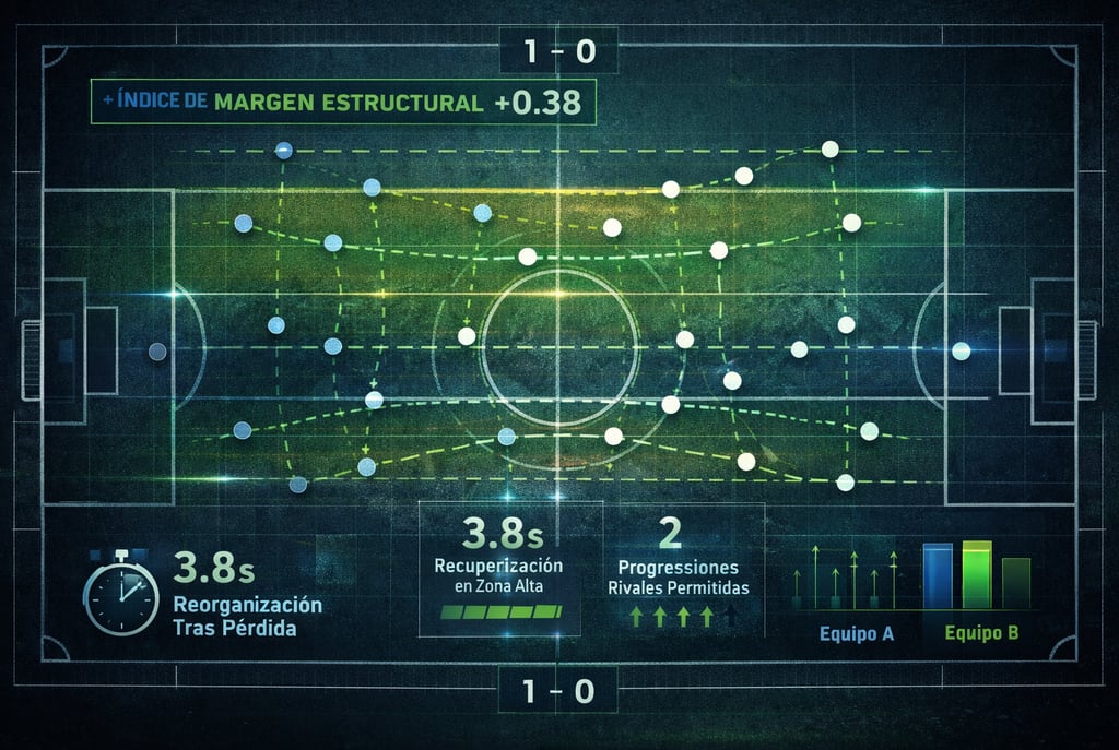Para interpretar correctamente el índice de margen estructural en partidos cerrados del fútbol moderno, debe analizarse junto a estabilidad interlíneas, progresión rival permitida y eficiencia de recuperación.