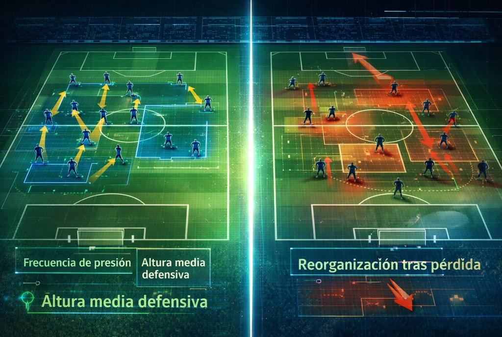 Un equipo puede registrar un valor bajo (presiona constantemente), pero si su proporción de transición defensiva estabilizada es baja, la presión genera desorden.
