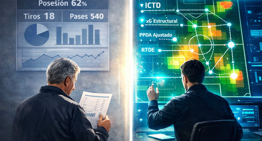 Modelos estructurales vs métricas tradicionales en el análisis competitivo del fútbol moderno: diferencias metodológicas y precisión predictiva.