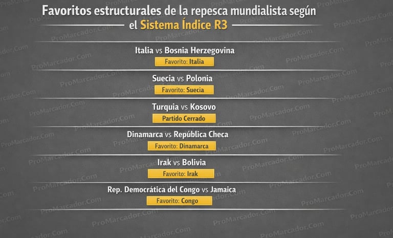 Sistema Índice R3 en la repesca mundialista 2026: quiénes son los favoritos reales según el análisis estructural de rendimiento competitivo