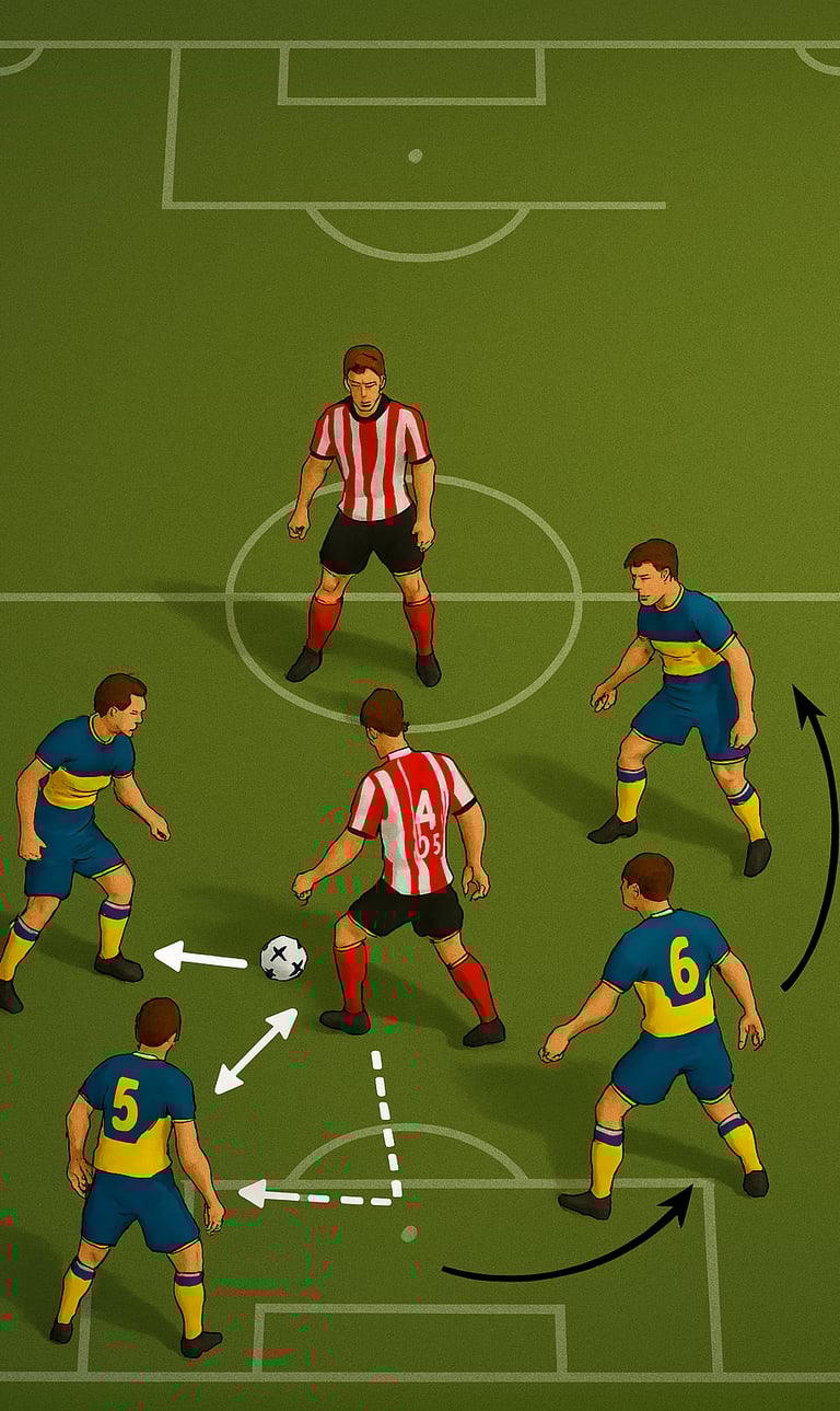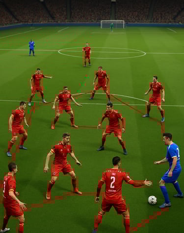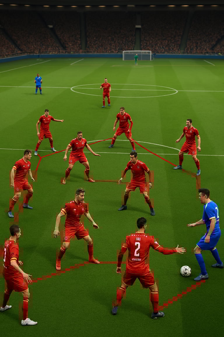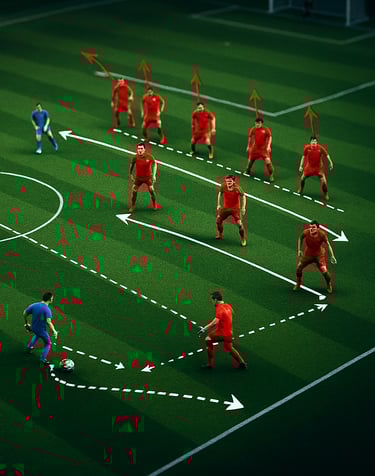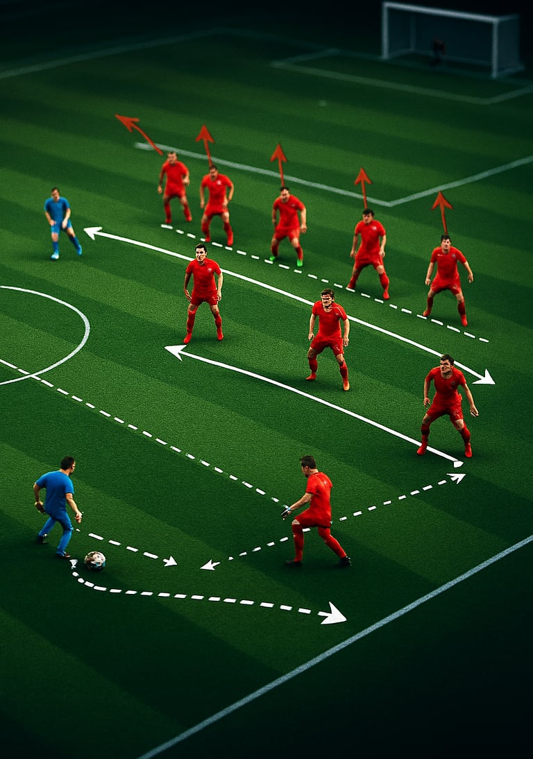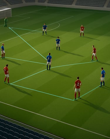 • Ángulos de cobertura: Los jugadores escalonados deben colocarse en diagonales, no en línea recta. Esto permite cerrar dos líneas de pase con un solo movimiento.
