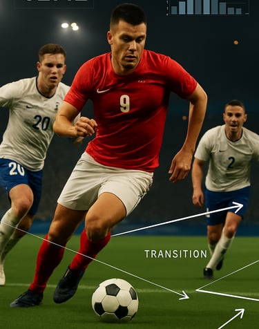 Durante la transición ofensiva, su lectura vuelve a ser determinante. Tras recuperación, el pivote debe evaluar si conviene asegurar la posesión o activar un ataque rápido. Esta decisión condiciona la altura del equipo y el comportamiento de laterales e interiores. Un pivote maduro entiende que no toda recuperación debe convertirse en verticalidad inmediata.