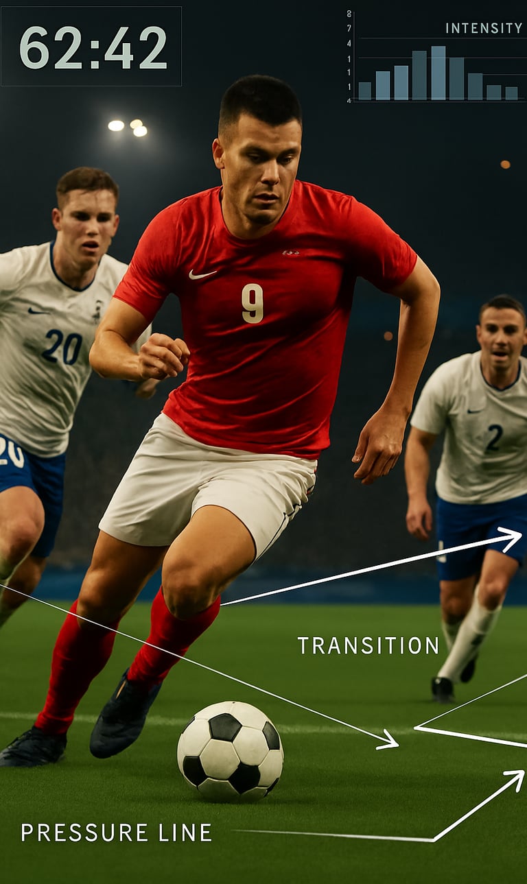 En los primeros 15 minutos se nota si el ataque busca rupturas profundas, juego de apoyo o movilidad continua entre líneas. Un delantero muy móvil anticipa un plan de desmarques y posesión vertical; uno más fijo indica búsqueda de remates o juego directo.